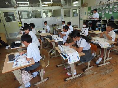 5年生と6年生は社会の授業を別室を使ってそれぞれ行っていました。