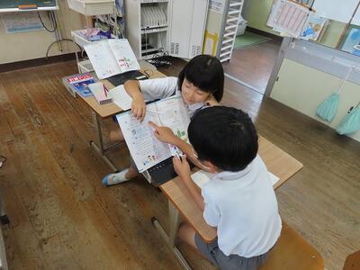 複式学級を中心に、子供たちの学習に対して地域の方々のご協力をいただきたいとコミュニティ・スクールでお願いをしたところ、早速会長のS様と副会長のO様に子供たちの様子を参観、そして支援していただきました。