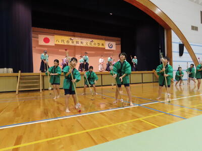 11月24日(日)に行われた東陽町文化の祭典。1・2年生が合唱と合奏、3・4・5・6年生と東陽中学生が古くから継承されてきた「石匠太鼓」「箱石銭太鼓踊り」「坂より上棒踊り」の3つの踊りを発表しました。