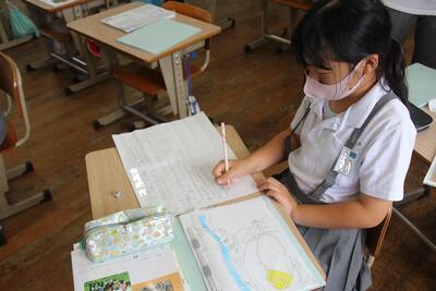 社会科では「はたらく人たちと私たちのくらし」を学習しています。この日は、東陽町にあるお店ではたらく人たちについて調べます。お店を見学する前に、質問を考えていました。