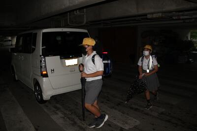 児童の登校時間は、台風の影響で少し雨が降っていたので、車で送ってもらう人がいました。やはりピロティーは(半地下の駐車場)は便利です。
