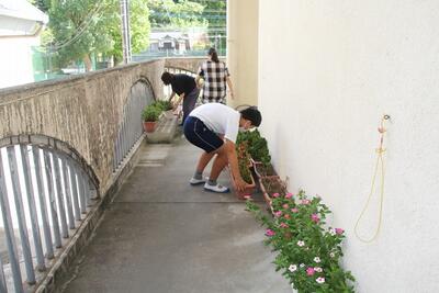 登校中に咲いていた彼岸花を2年生が持ってきてくれました。残暑は厳しいですが、植物は季節を感じ取っているんだなあと思いました。季節といえば9月は台風シーズンです。台風14号が連休中に接近しそうなので、みんなで台風対策を行いました。ご家庭の台風対策もよろしくお願いします。