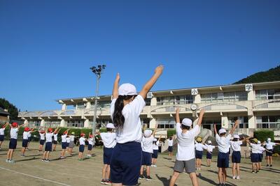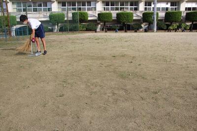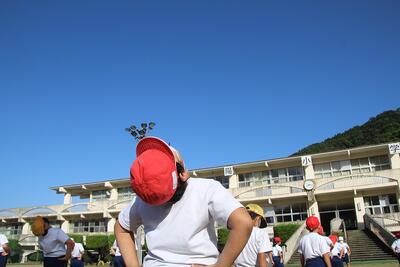 台風14号が過ぎ去りました。この日は台風一過の青空となり、朝の活動を行いました。ラジオ体操、健康観察をして、5分間のランニングタイムです。これまでの蒸し暑さから解放されて、秋のすがすがしい空気に包まれて、気持ちよく活動することができました。ただ、運動場の隅にはイチョウの葉とギンナンが散乱していました。