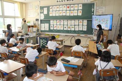外国語活動では、"Do you like~? I like ~. I don't like~.” の学習をしました。ALTのT先生の発音を聞いて、話したり聞いたりしました。3年生から始めてこの学習にも、ずいぶん慣れてきました。グローバル人材を育成中です。