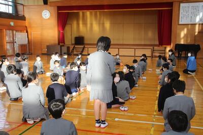 やまびこの集い(児童集会)を行いました。運営委員会から前月の生活目標の振り返りと今月の生活目標についての説明などがありました。感想発表では、ほぼ全員の児童が手を挙げていました。発表した児童は自分の感想をはっきり伝えていました。