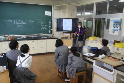 5年生は理科室で学習しました。1年間の単元を提示して、これからどんな学習をするのか、どんな学習の仕方を行うのかなど、話し合っていました。実験や観察などを通して、理科の見方・考え方を働かせて、科学的に解決の力を身に付けていきます。また、自然を愛する心を育んでいきます。