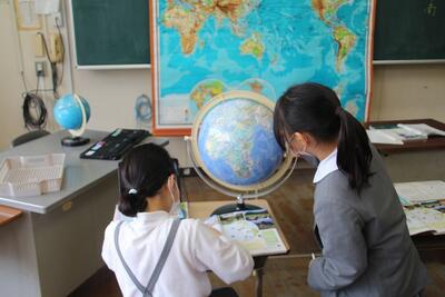 社会科では、日本の国土と世界の国々について学習しています。この日は、世界地図や地球儀を使って、日本や世界の国々の位置や、大陸・海洋などを調べました。これから日本と世界の国々との関連性を学習していきます。