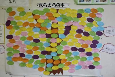 昨日修了式を行い、1年間の教育活動が終了しました。今回はお伝えできなかった教育活動を紹介します。今年度の教育スローガンに「自分を好きになる」「友達を好きになる」ことを掲げ、取り組んできました。児童の自己肯定感を高めるために、「きらきらの木」の実践を行いました。学年ごとに色分けしたカードに、「すごい」「さすが」と感じたことや「ありがとう」と思ったことなどを書いて、「きらきらの木」をみんなで大きくしようと呼びかけました。書かれた児童はその木を見て喜んでいました。また、書いた児童には担任から「よく見つけたね」と声かけをして、見つけることのすばらしさを伝えました。東陽っ子は意欲的に活動を行い、「きらきらの木」がとても大きくなりました。