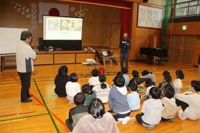 春休みにALTのJ先生の英語教室を行い、23人の児童が参加してくれました。保護者アンケートでリクエストがあり、関係者の努力で実現したものです。英語で自己紹介をしたり、4つのゲームをしたりして、英語に慣れ親しみました。最後にカナダで行われているイースターエッグを探すゲームをして、カナダの文化に触れました。この教室のために、ALTのJ先生が事前に教材やゲーム、ネームカード、イースターエッグのチョコレートなどを準備して、児童を楽しませてくれました。参加した児童は笑顔いっぱいで活動できました。J先生、ありがとうございました。