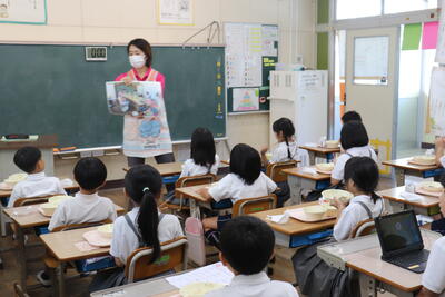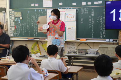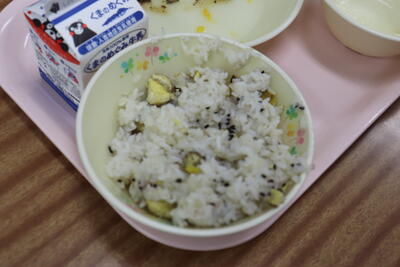 給食の時間では、栄養教諭から栗についてのお話もしていただきました。
