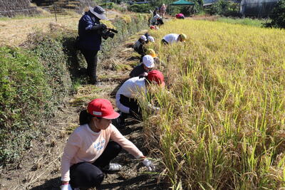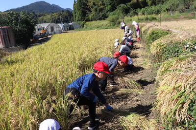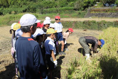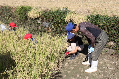 この日は、地域の橋本様のご協力の下、稲刈りを行いました。