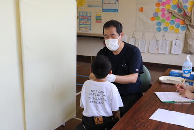 子ども達は、検診されるお医者さんや先生方に、
