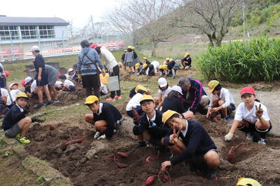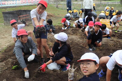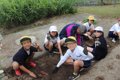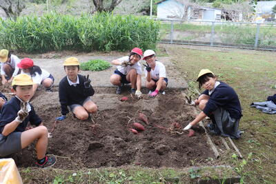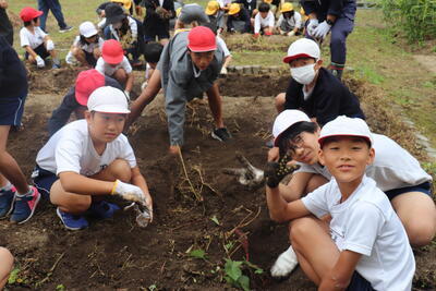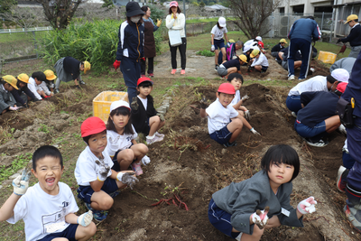 学級園で植えていた芋の収穫を行いました。