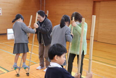を目的とし、1・2年生が「昔遊びを楽しもう」に取り組みました。