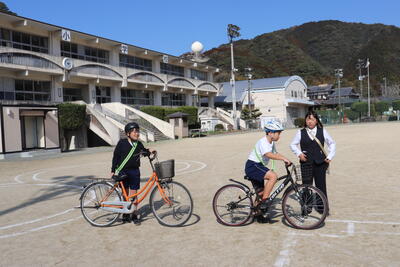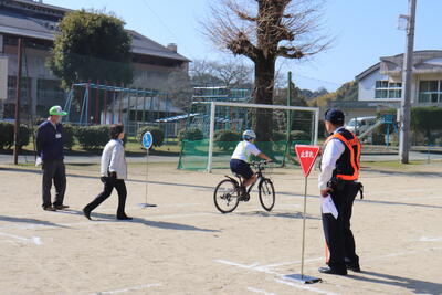 東陽駐在所の皆様の力をお借りして、6年生を対象とした自転車教室を行っております。