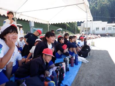 5年生、6年生は葦北郡陸記録会に参加しました。トラック内で様々な種目が行われる中、テントからは大きな応援の声が響きました。