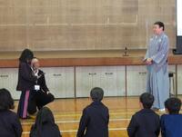 日本の伝統を感じる学習として、今年も、日本舞踊家の花柳琴臣さんに来ていただきました。琴臣さんは、舞台での舞踊家としてのご活躍とともに、舞台の振り付けや演出、さらに全国の各学校に出向かれて講演するなどご活躍の方です。