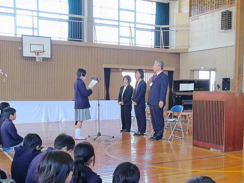 就任式では、新たに就任された先生方へのメッセージを代表児童が伝えました。