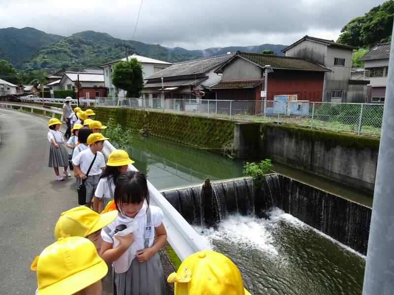 ➀明日は、生活科で通学路探検に出かけます。お天気は「曇り一時雨」の予報で、何とか探検に行けそうな気がします…!暑さが予想されますので、黄色ぼうし、水筒を忘れずに持ってくるよう伝えています。雨が降った場合には延期します。