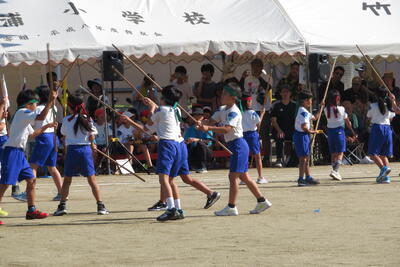 田浦小学校では、運動会で「甘夏音頭」を踊ります。今日の全体練習は地域の方々に直接、甘夏音頭をご指導していただきました。