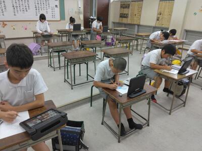 読書イラストクラブ。集中してイラスト描きに取り組んでいますね。階段にイラストクラブの作品が掲示されていますので今度ご覧ください(*^O^*)/