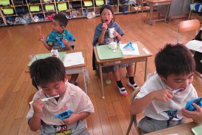 1年生、歯の染め出し