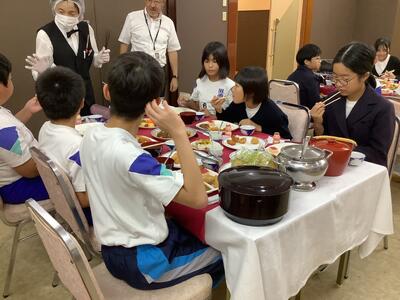 伝統クラブ。今回は、和太鼓にチャレンジ。地域の方のご指導のもと、すぐにリズムを覚えました。和太鼓の音と振動が全身に響きます((^_^)//~~~