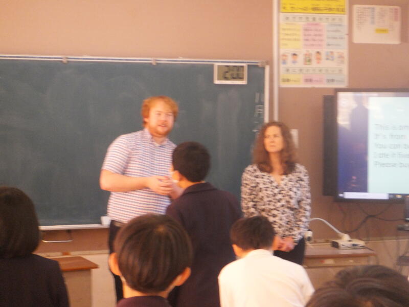 月1回、全校イングリッシュタイムを行っています。今回は、松田先生とALTのエリック先生が各教室とオンラインでつながって英語でコミュニケーションを行いました。「Hello~!」