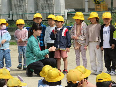 山田さんにお礼を述べる児童。これからも防災や災害に備えた学習をがんばります!