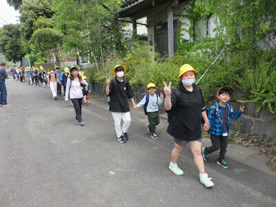 初夏を思わせる5月下旬(遅くなりました)1年生はタブレットを持って、学校近くの通学路を巡りました。
