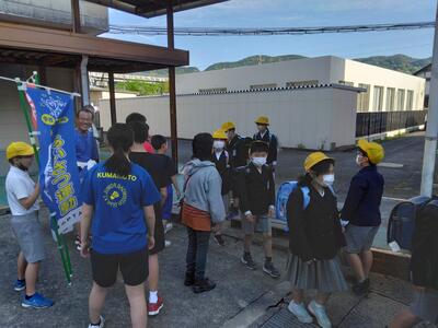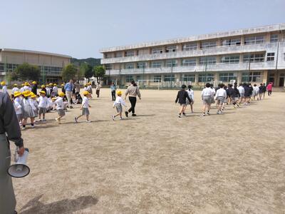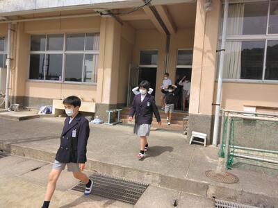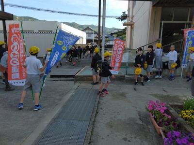 大雨時を想定した引き渡し訓練を実施しました。保護者への訓練通知と児童への放送を行った後、帰りの準備をした児童が所定の教室へ一斉に移動をしました。登校班班長は1年児童を迎えに行きました。