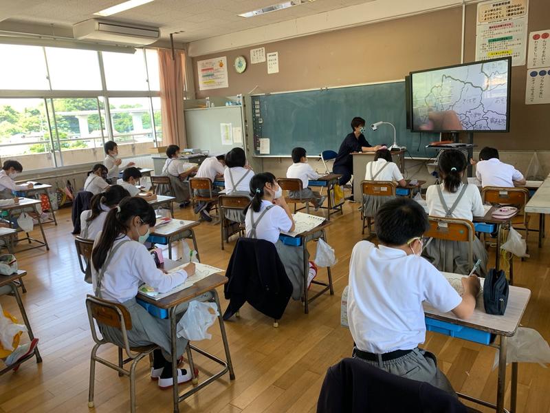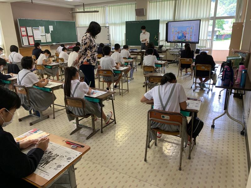 一番人数が多い6年生は、デコちゃんルームに移動して、外国語の授業。さすが6年生です。集中して、授業を受けることができています。