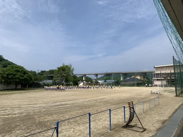 3年生は、運動場で体育。久しぶりに全力で走ったかな?