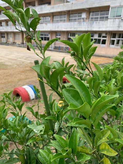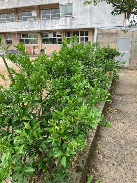日曜日にPTA会長さんが、甘夏の木に消毒をしてくださいました。