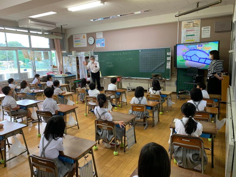 5年生は、算数。角柱の体積を求めました。公式を使って、正しく求めることができたかな。
