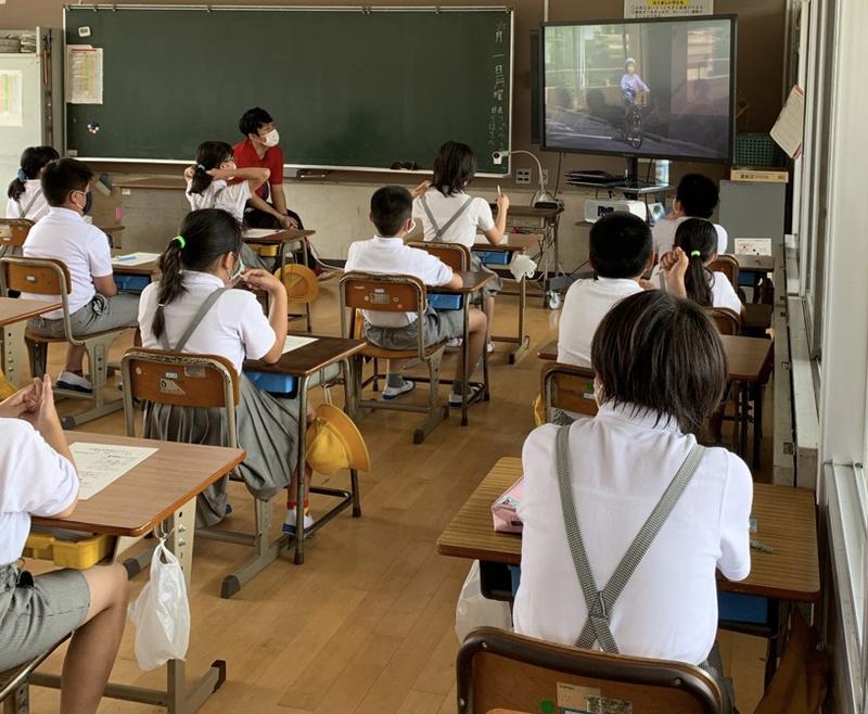 一旦停止をしない自転車の動画に、すぐに気づいた子どもたち。