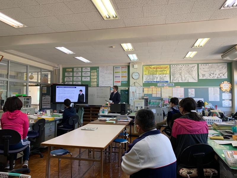 オンラインの資料を使って、職員室で研修です。