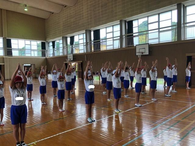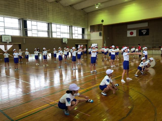 本日(9月16日)は、雨のため体育館で練習です。3,4年生は「Hello」の曲で踊ったあと、「台風の目」の練習をしていました。どうすうればはやくなるのかをグループで考えていました。はたしてどんな工夫がみられるのでしょうか。