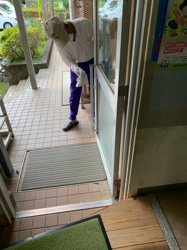 今回、老人会の方々がお手伝いにきてくださり、ドアノブや窓枠など、子どもたちが触れそうなところをふいてくださいました。