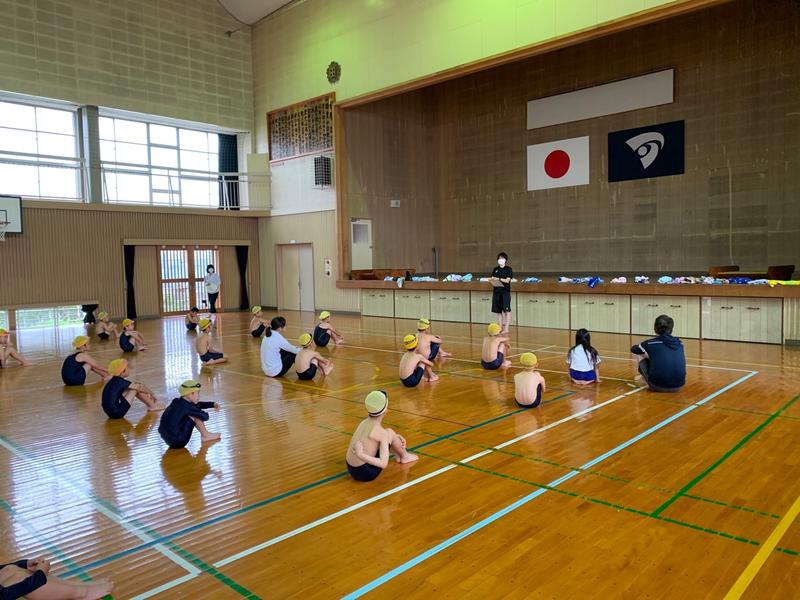 6月30日(木)は、3年生のプール開きでした。体育館で準備運動と先生の話を聞いた後、プールに移動しました。