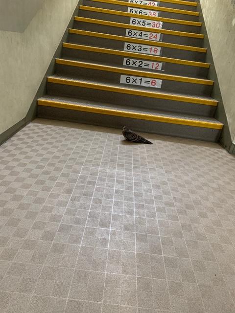 鳩が校舎の中に入ってきました…子どもたちと一緒にいたかったのかな?窓を開けて、しばらくすると、自ら飛び去っていきました…