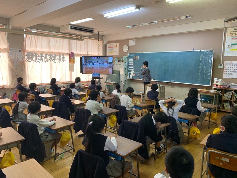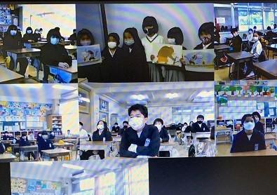 2年生の教室では、画面の中の1年生をしっかり見て、感想を伝えあっていました。