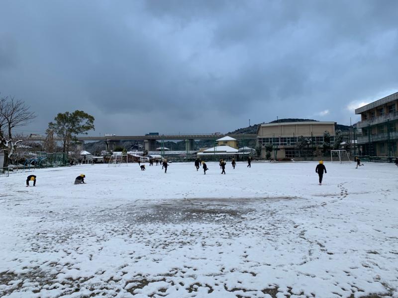 子どもたちは、運動場で雪合戦をしていました。