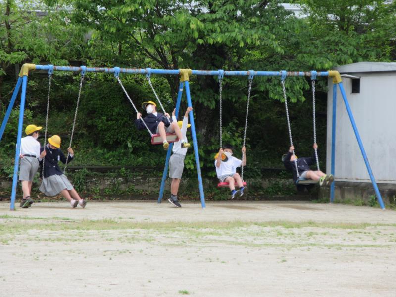 朝からさっそく楽しそうに遊ぶ子供たち。本校児童は良く外で遊びます。