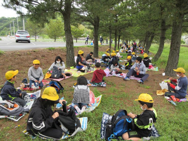 何といってもお楽しみは「お弁当タイム」。登校班ごとにおいしくいただきました。