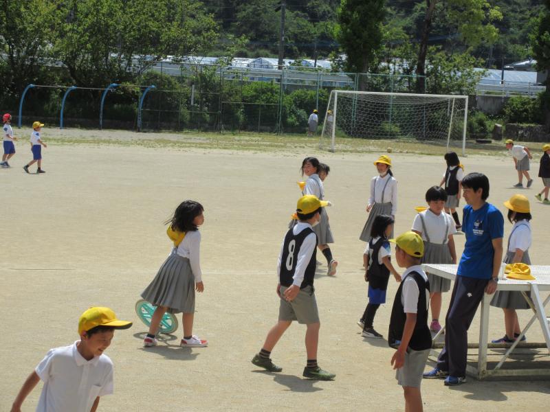本校児童は良く外で遊びます。職員もよく遊んでくれます。とっても楽しそうです。