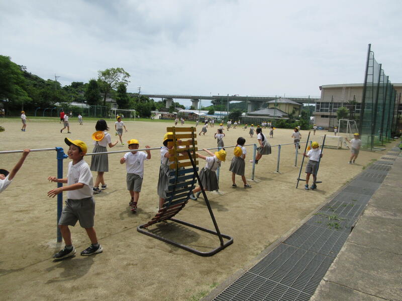 昼休み前、ちょっと雨がやみました。昼休みにはあっという間に子供たちの姿が・・・。たくさん遊んで、心と体を鍛えて欲しいです。