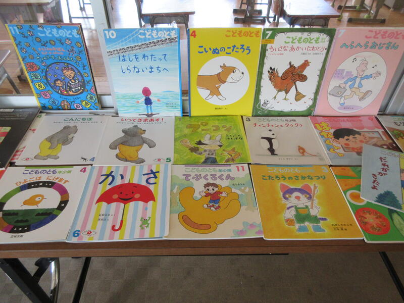 2年生教室前の廊下には、楽しそうな絵本が並べてありました。すぐ手に取って読めそうです。