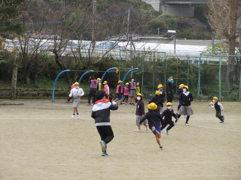 12月19日(月)、とても寒かったけど、縦割り班活動として外でケイドロをして楽しみました。