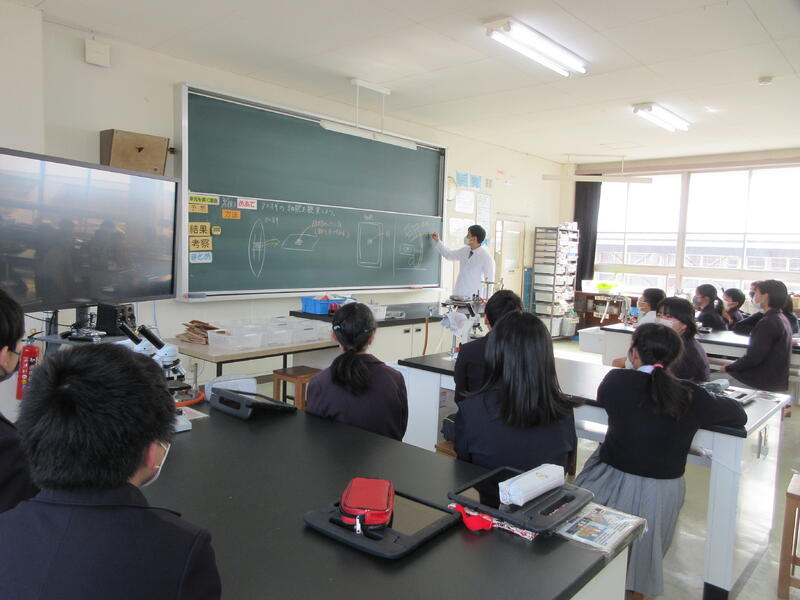 2月3日(金)、6年生が田浦中学校にタブレット端末を持って出かけました。玉ねぎの鱗片の細胞に色を付け、顕微鏡で見ることができました。とても喜んでいた6年生。4月からは立派な中学生になってくれることでしょう。
